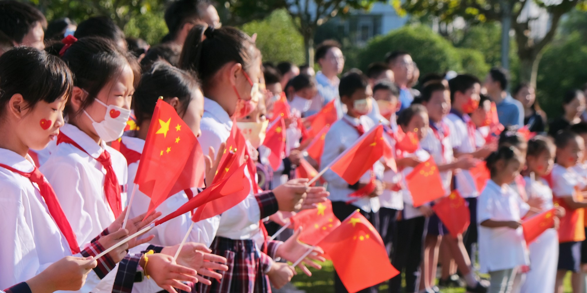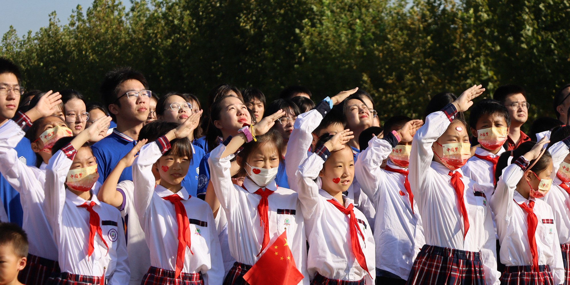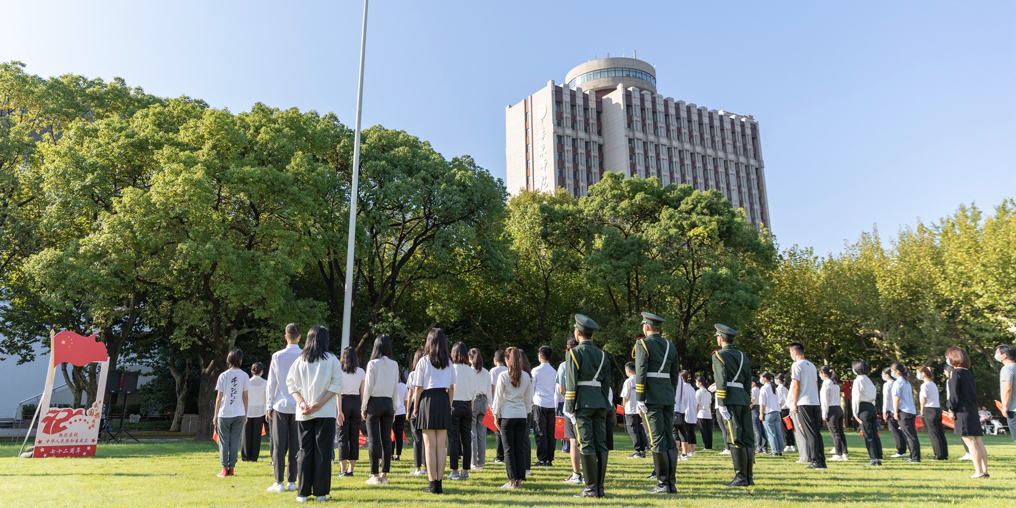 我在华东师大,升国旗奏国歌,祝福祖国!