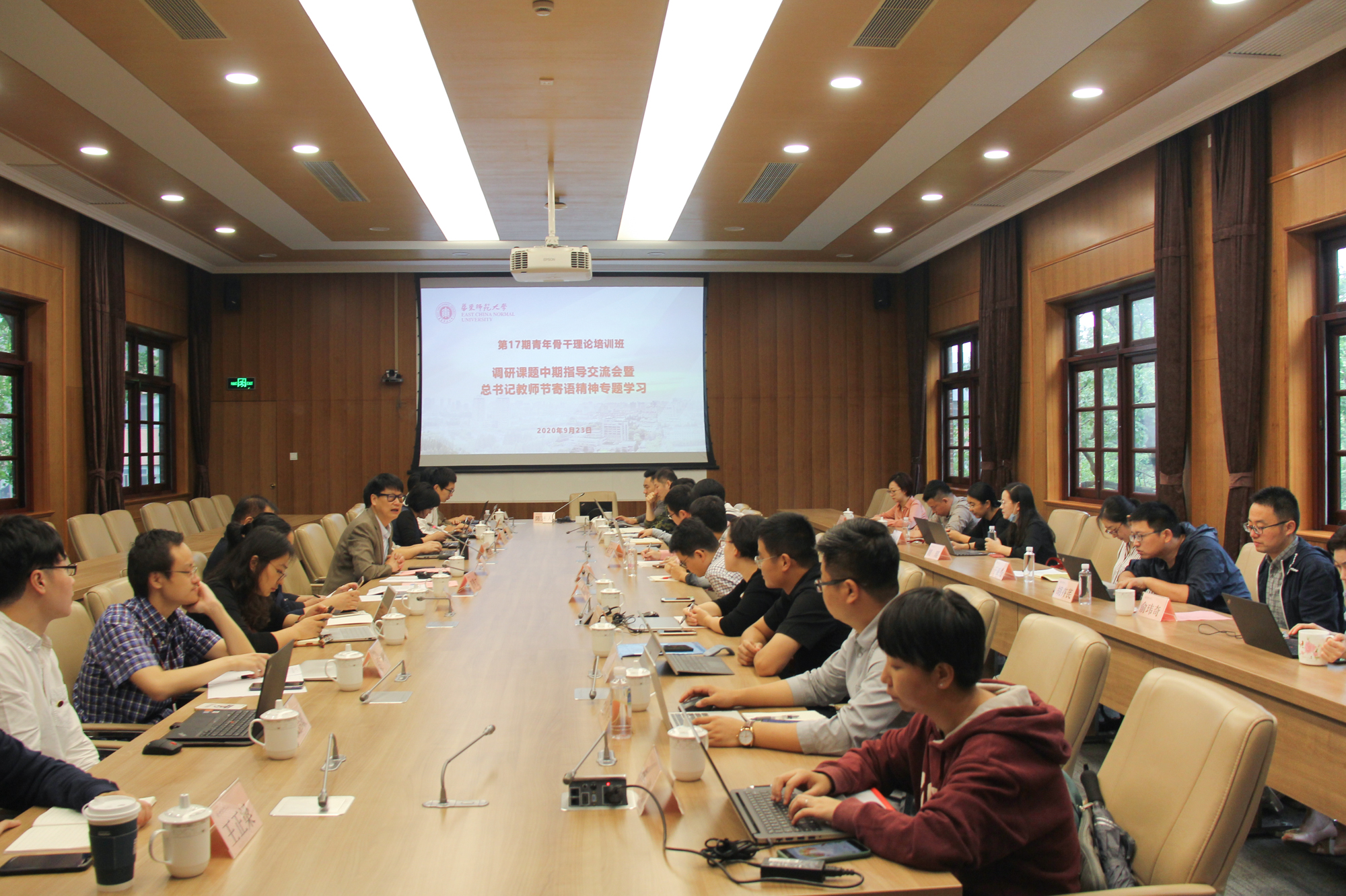 9月23日上午,第17期青年骨干理论培训班调研课题中期指导交流会暨习近平总书记教师节寄语精神专题学习会在中山北路校区办公楼小礼堂举行。马克思主义学院曹景文教授应邀与会作课题点评指导,会议由校党校副校长兼高级...