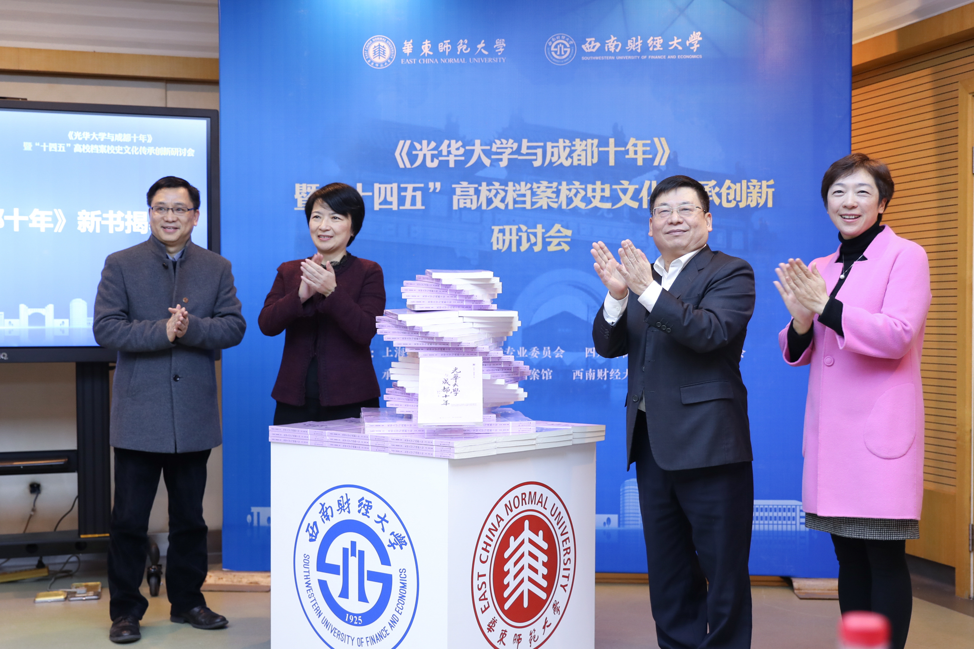 12月5日,万象城awcsport官网档案馆和西南财经大学共同为两校档案馆合编的《光华大学与成都十年》举行新书发布会。华东师大党委书记梅兵、副校长孙真荣,西南财经大学党委书记赵德武、党委副书记曾道荣、副校长史代敏出席新...