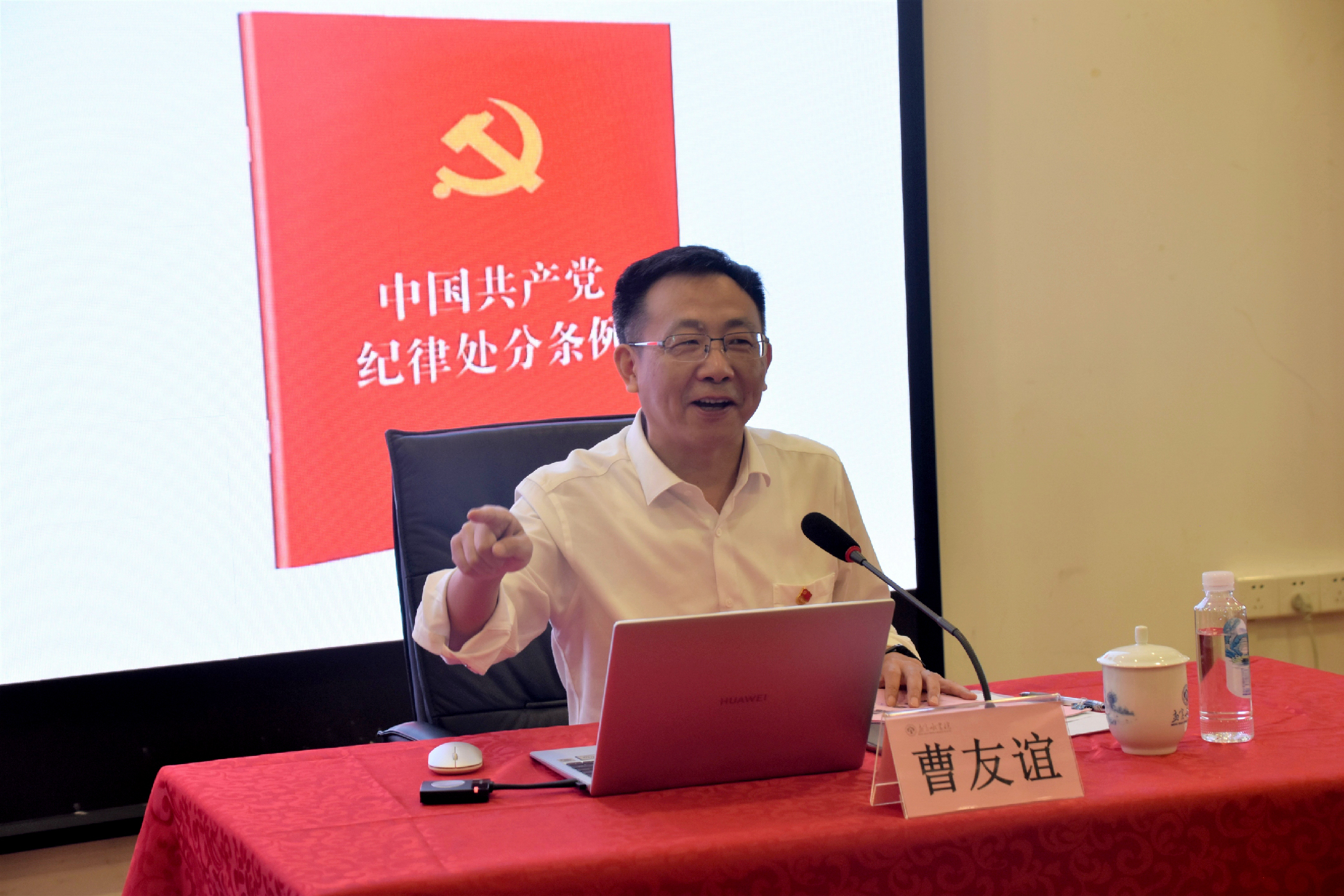 6月16日上午,校党委副书记、纪委书记曹友谊为孟宪承书院2021届毕业生党员讲授题为“‘法’‘德’并举,师为世范”的专题党课。党课融合党史学习教育、党规党纪教育和师德师风教育等内容。校纪委办、马克思主义学院、...