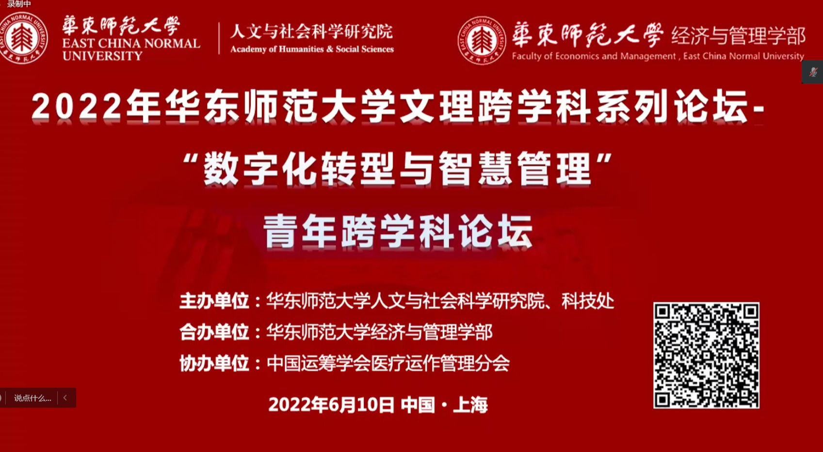 6月10日下午,由华东师大人文与社会科学研究院、科技处共同主办,经济与管理学部合办的文理跨学科系列论坛——“数字化转型与智慧管理”青年跨学科论坛(第一期)在线举行。本次论坛由经济与管理学部统计交叉科学研究院副院长杜刚教授发起并策划组织,吸引了来自全国多所院校的260余名师生在线观看和研讨。论坛开幕式由人文与社会科学研究院副院长吴文钰主持。“数字化转型与智慧管理”青年跨学科论坛在线举行 人文与社...