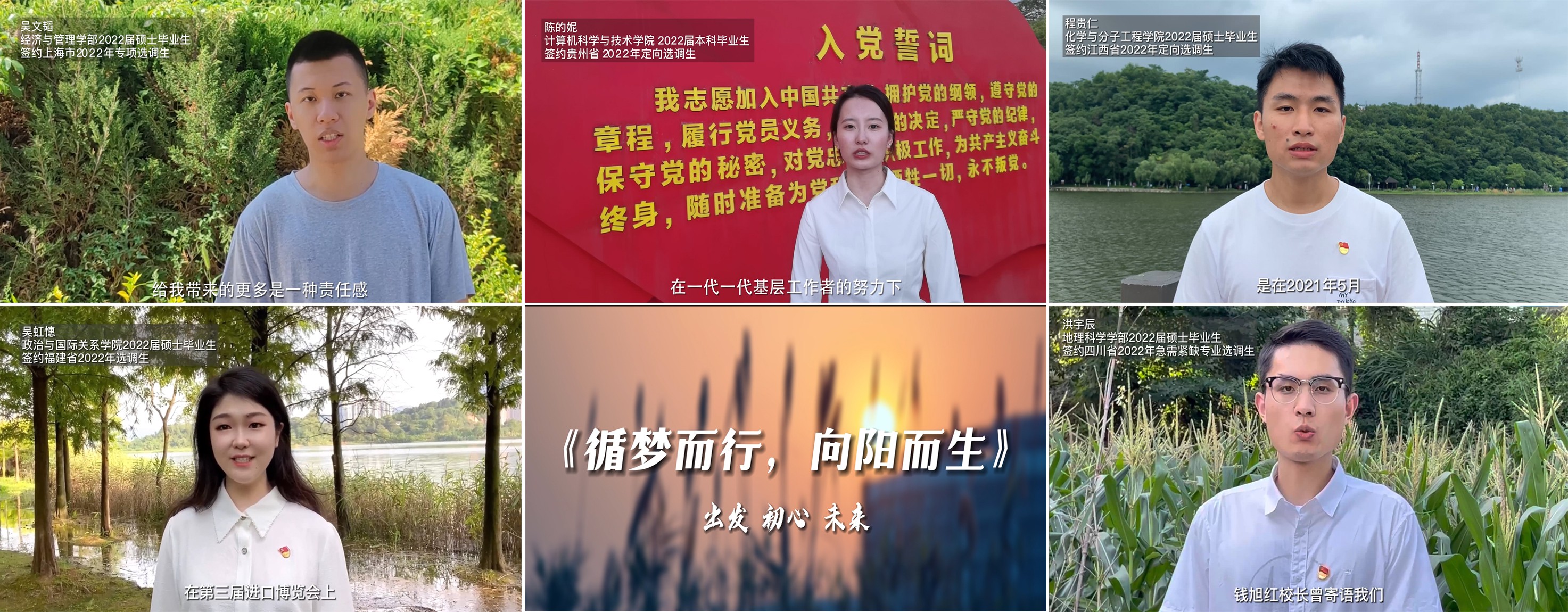 7月6日上午,华东师大2022年选调生毕业生行前会在线上举行。选调生毕业生、院系代表、选调生校友代表相聚一堂,校党委副书记杨昌利,党委学生(研究生)工作部部长、选调生工作办公室主任余佳,以及党委组织部、校团委、学生职业发展中心等相关负责人出席会议。会议由选调生基层服务协会负责人、地理科学学院博士生程婉莹主持。华东师大2022年选调生毕业生行前会在线上举行 选择了选调生,也意味着选择了一份沉甸甸的责...