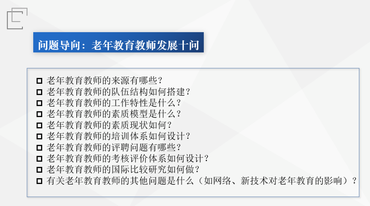 7月9日上午,上海市老年教育课程研究与评估指导中心通过腾讯会议平台,召开“老年教育课程体系研究咨询会”。上海市老年教育协会会长熊仿杰、上海市学习型社会建设服务指导中心办公室主任彭海虹、上海市老干部大学副校长查正和、上海老年大学党支部书记张兴等四位专家,上海市老年教育课程研究与评估指导中心副主任裴建华、李家成,中心研究室主任张永、马丽华、朱敏、徐敏华,以及中心成员黄莹、唐迪参与了此次会议。会议...