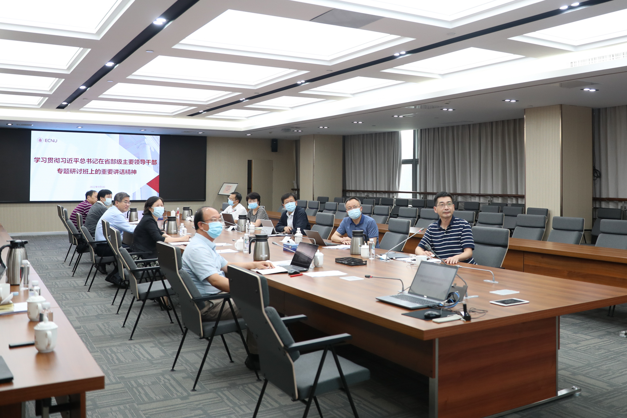 9月2日下午,华东师大全球中文发展研究中心实地考察评审会在普陀校区召开,会议以线上线下相结合的方式举行。由教育部语言文字信息管理司规划协调处副处长潘勇组队,厦门大学苏新春(组长)、上海师范大学陈昌来、山东大学宁继鸣、上海社科院唐涛、浙江师范大学王辉、北京语言大学吴应辉、国家语委科研机构秘书处张日培等7位专家学者对中心建设工作进行了实地考察评审。华东师大校长钱旭红、副校长顾红亮、校长助理吴瑞君等...