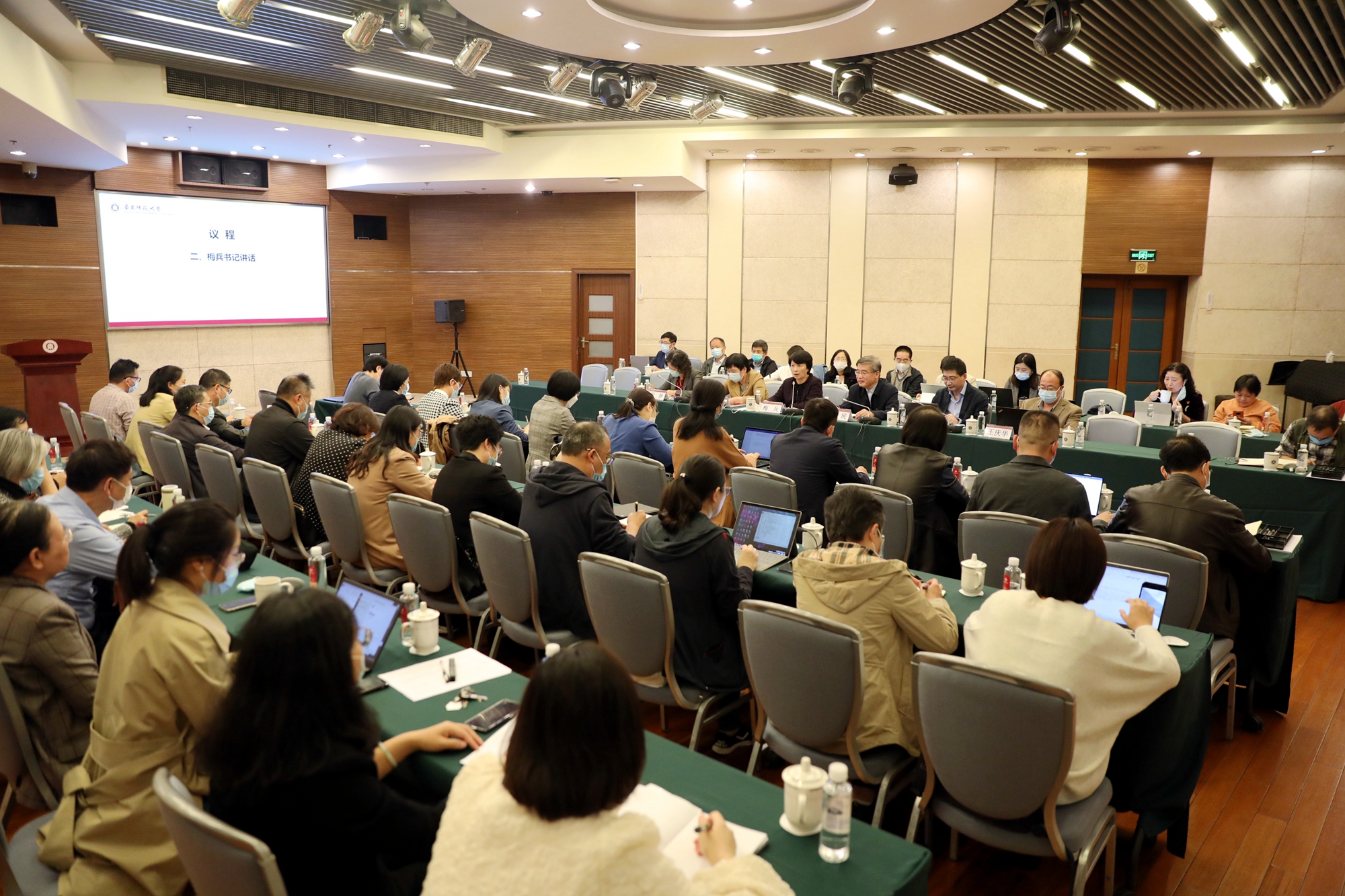 书记例会部署近期重点工作 11月2日下午,华东师大在普陀校区召开书记例会,对近期重点工作进行通报和部署。校党委书记梅兵,校党委副书记朱民、杨昌利,副校长顾红亮出席会议。会议由朱民主持。 会上,顾红亮通报了近期校园安全和意识形态工作情况。校党委书记梅兵讲话 梅兵充分肯定了学校各单位近期以来的校园安全工作成效,并对今后的重点工作进行了部署,强调要继续做好常态化疫情防控工作;要对接国家和地方战略需...