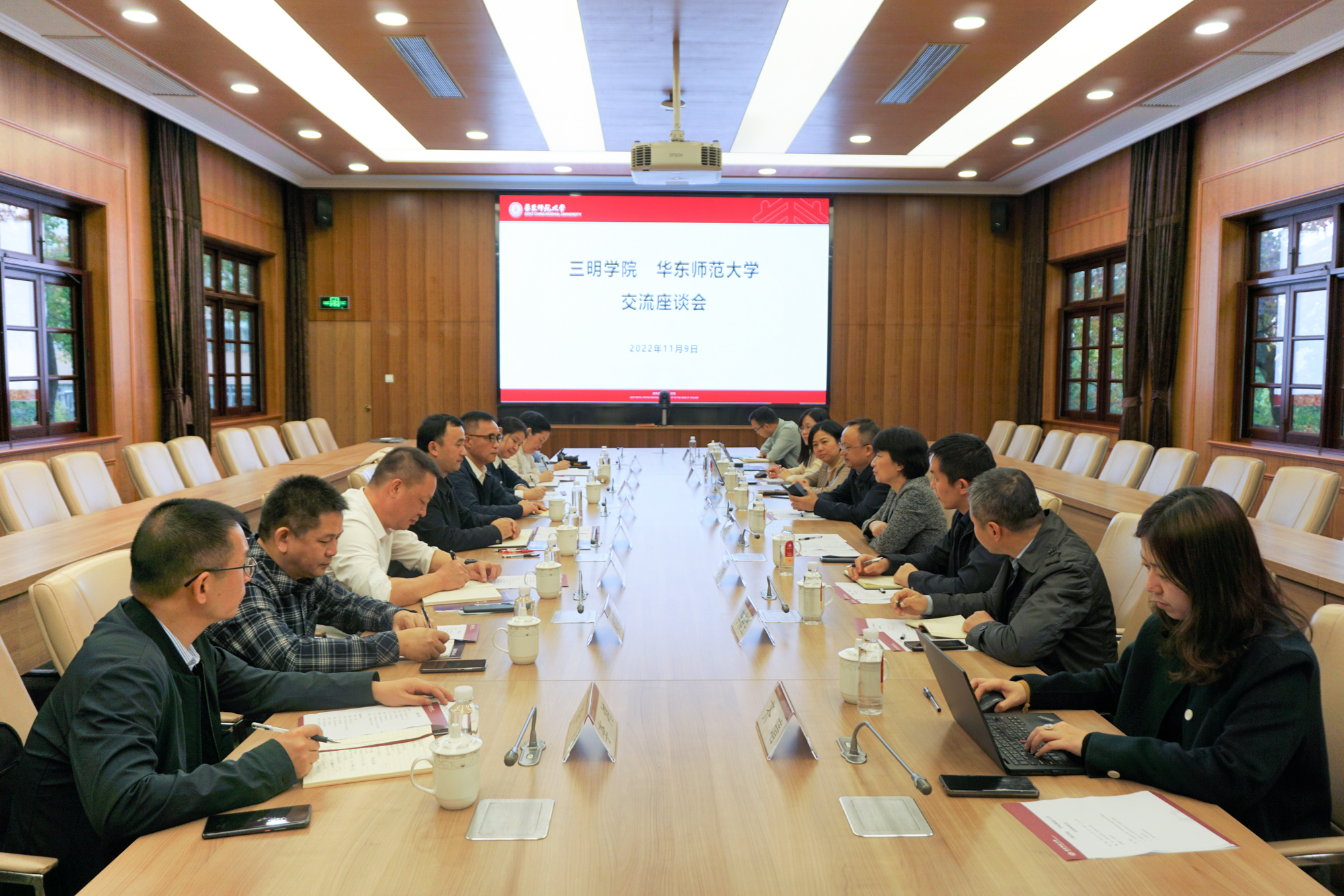 11月9日,校党委书记梅兵会见了福建三明学院王乾廷校长一行。副校长雷启立,学校办公室、教务处、研究生院、人事处、科技处、城市发展研究院等单位负责同志陪同会见。双方就学科建设、人才培养、科技成果转化、师生交流等开展交流座谈。三明学院校长王乾廷一行来校访问交流 座谈会上,梅兵对三明学院一行的来访表示热烈欢迎,她介绍了华东师大的办学历史与优势特色,强调华东师大以“建教育强国”和“以教育强国”为使命...