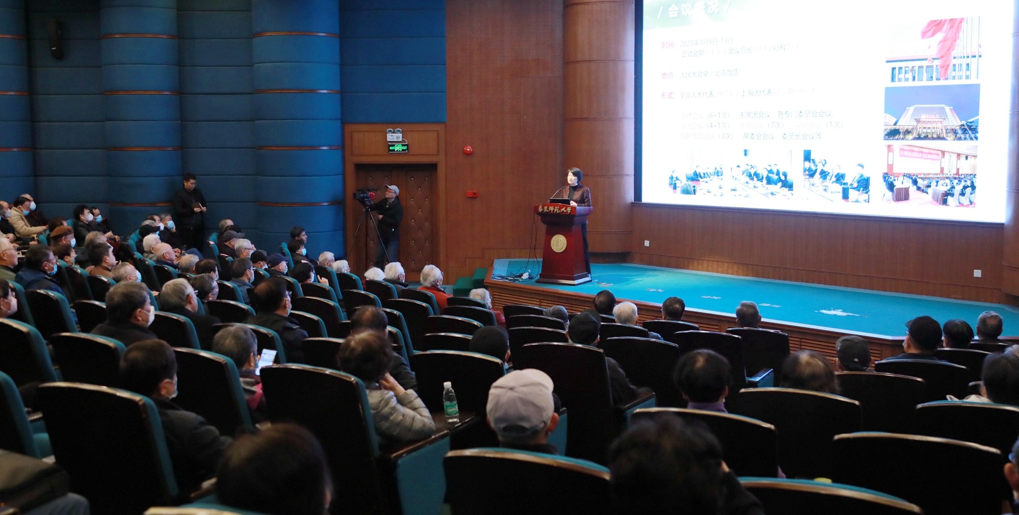 3月22日上午,万象城awcsport官网在普陀校区逸夫楼报告厅召开离退休干部全国两会精神传达暨校情通报会。全国人大代表、校党委书记、老龄工作委员会主任梅兵向老同志们作了主题为《踔厉奋发新征程 勇毅前行向复兴》的十四届全国人大一次会议精神传达报告,校党委副书记、老龄工作委员会副主任孟钟捷作万象城awcsport官网近期校情通报。 上海市老教授协会理事会成员,华东师大离退休老同志、老教授协会理事会成员、关心下一代工作委员...