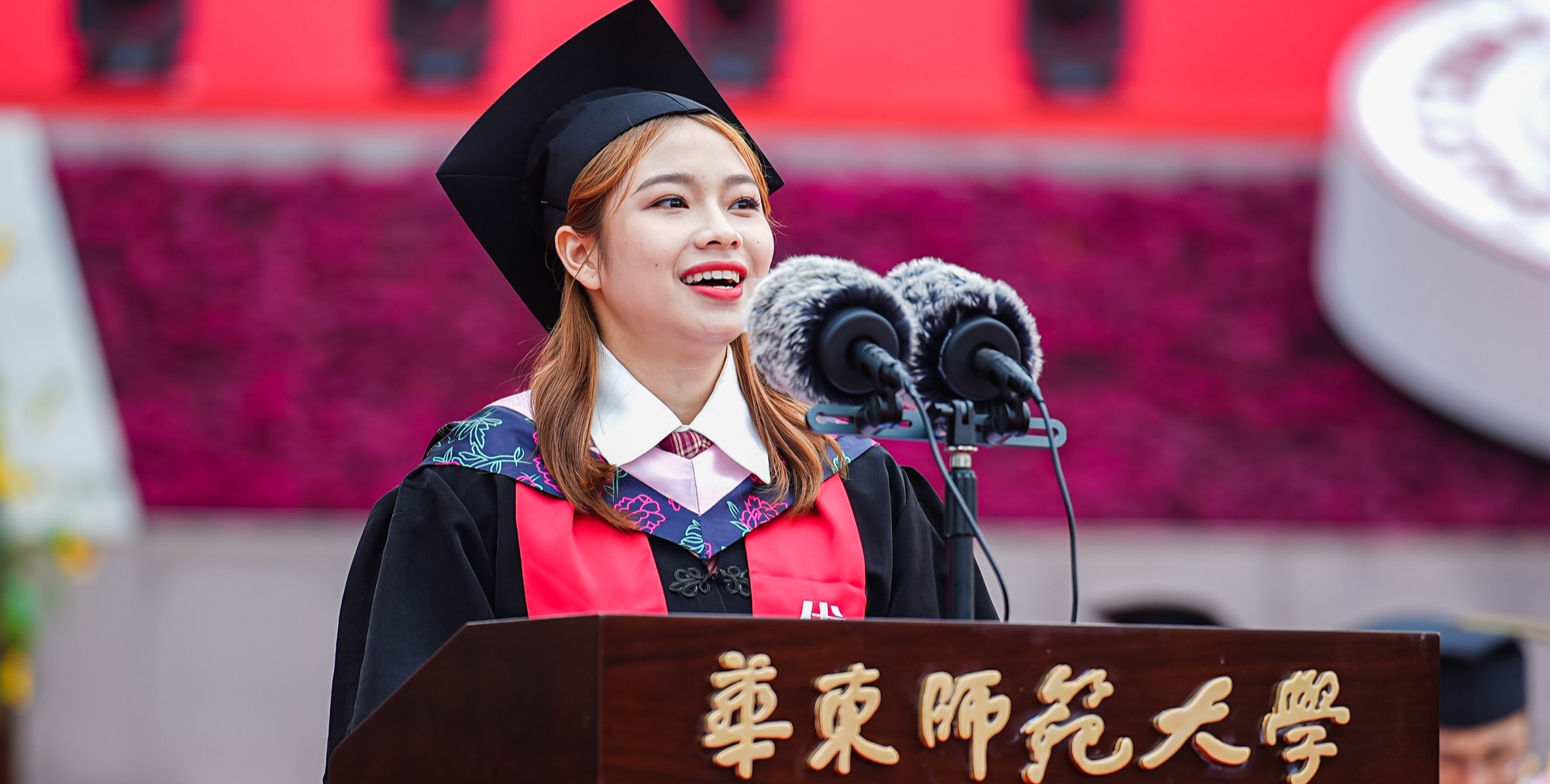 万象城awcsport官网2023届毕业典礼上,法学院的本科毕业生求倩一作为毕业生代表发言。她曾连续三年获得国家奖学金,主持的项目荣获“挑战杯”国赛铜奖、上海市金奖、“互联网+”大学生创新创业大赛上海市银奖、“汇创青春”大赛一等奖等。四年前,她怀抱着“为正义而读书,赋行动以知识”的初心走进华东师大校园。大学四年她通过专业学习、社会实践、科创项目等将自己铸造成了信仰正义、热爱知识、勇往直前的人。她对母校真情告白...