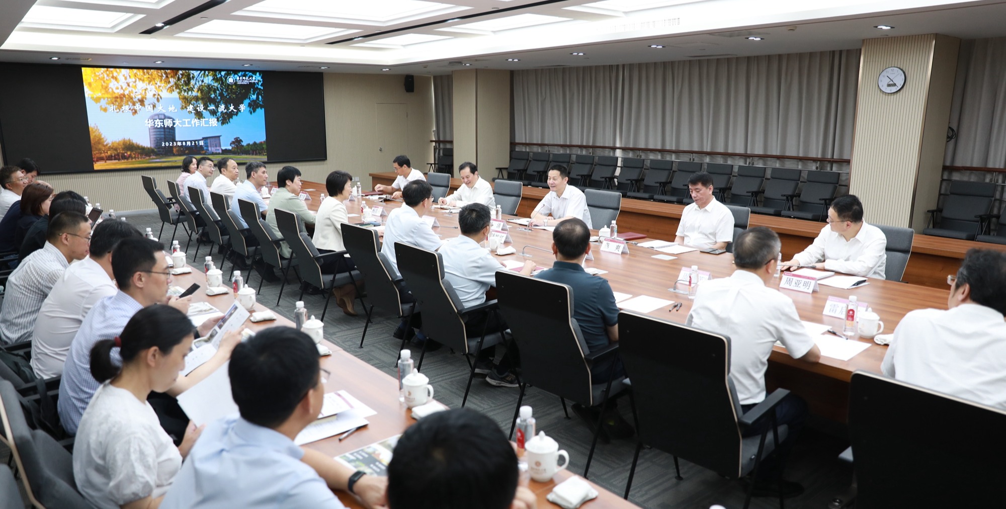 8月21日,上海市委副书记吴清一行来到华东师大闵行校区调研指导工作。市委副秘书长燕爽,市教卫工作党委书记沈炜,市教卫工作党委副书记、市教委主任周亚明,市委研究室副主任李志民陪同调研,华东师大党委书记梅兵,校长钱旭红,党委副书记杨昌利、曹友谊、孟钟捷,副校长周傲英、戴立益、雷启立、顾红亮、施国跃、程静,以及其他有关部门负责人参加调研座谈。上海市委副书记吴清一行调研华东师大 会上,梅兵介绍了学校...