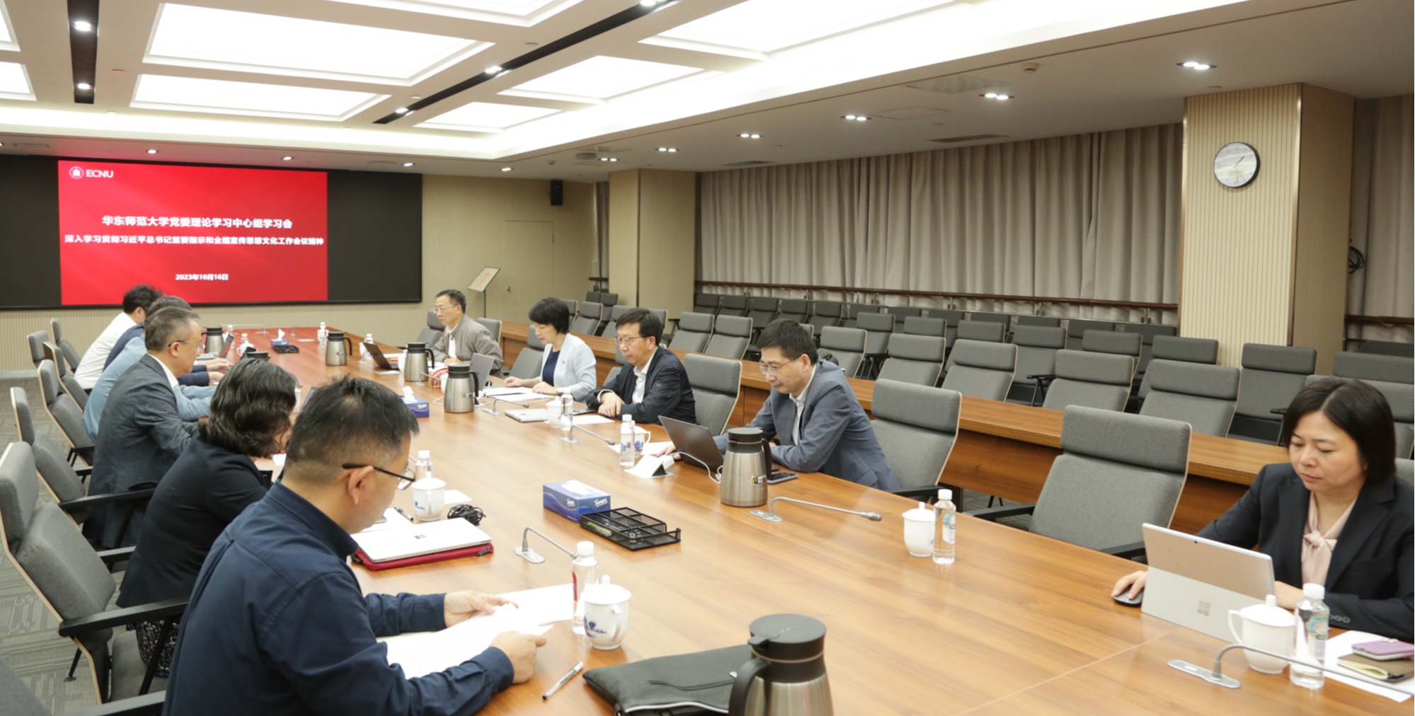 10月16日下午,华东师大举行党委理论学习中心组会议,专题学习习近平总书记重要指示和全国宣传思想文化工作会议精神。全体校领导、校党委理论学习中心组成员参加学习,学习会由校党委书记梅兵主持。华东师大举行党委理论学习中心组会议进行专题学习 学习会上,校党委副书记孟钟捷围绕习近平文化思想的时代背景、主要内容、重要意义及思考启示等内容,领学了习近平总书记重要指示和全国宣传思想文化工作会议精神。他表示...