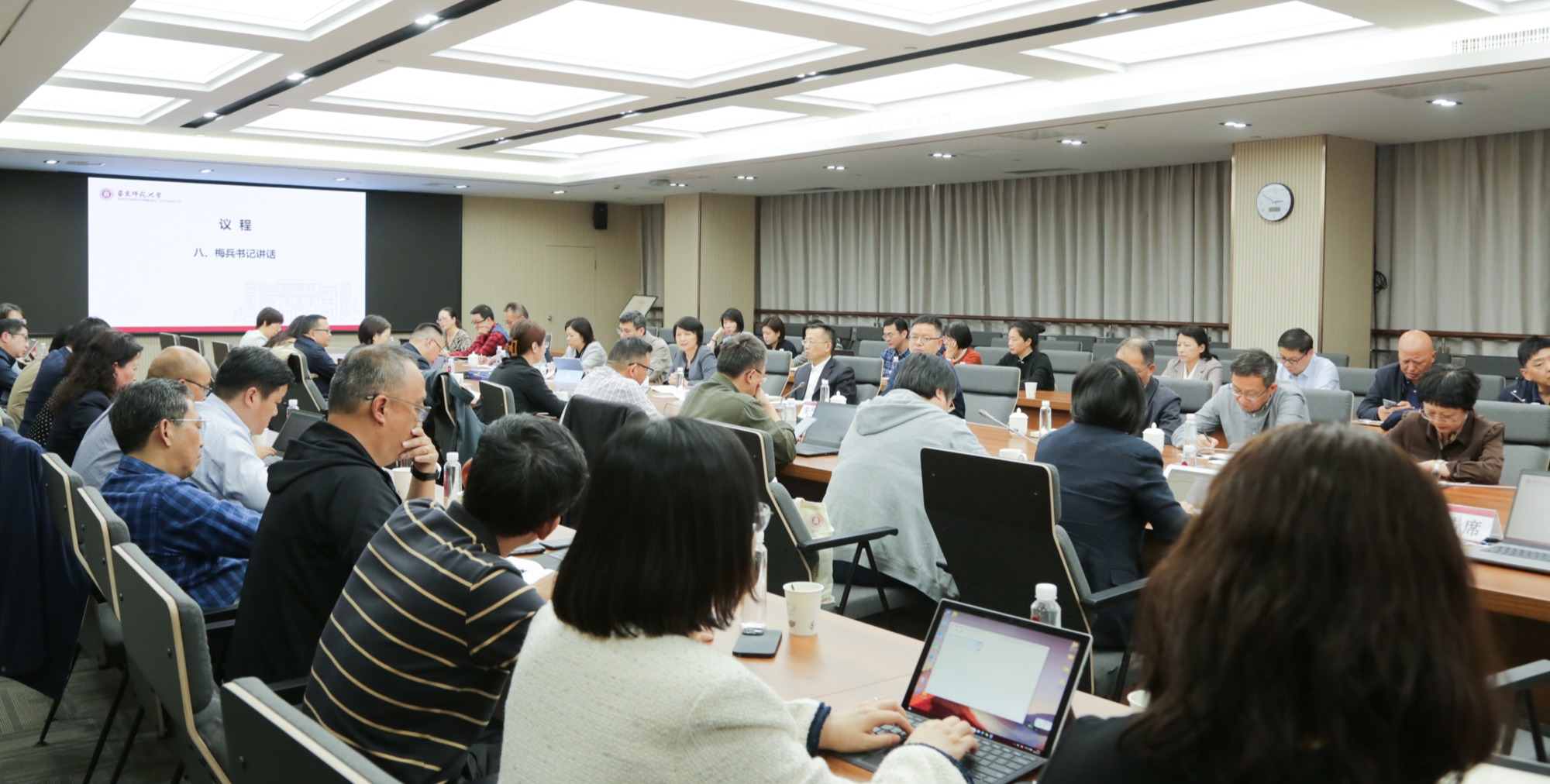 华东师大十四届党委第一轮巡察工作动员部署会于11月9日在普陀校区召开。校党委书记、巡察工作领导小组组长梅兵出席会议并作动员讲话,校党委副书记、纪委书记、巡察工作领导小组副组长、巡察办主任曹友谊主持会议,巡察组全体成员、被巡察单位主要负责人和联络员、巡察办全体成员参加会议。华东师大十四届党委第一轮巡察动员部署会召开 梅兵在讲话中指出,学校第十四次党代会提出了坚定不移全面从严治党,扎实推进党...